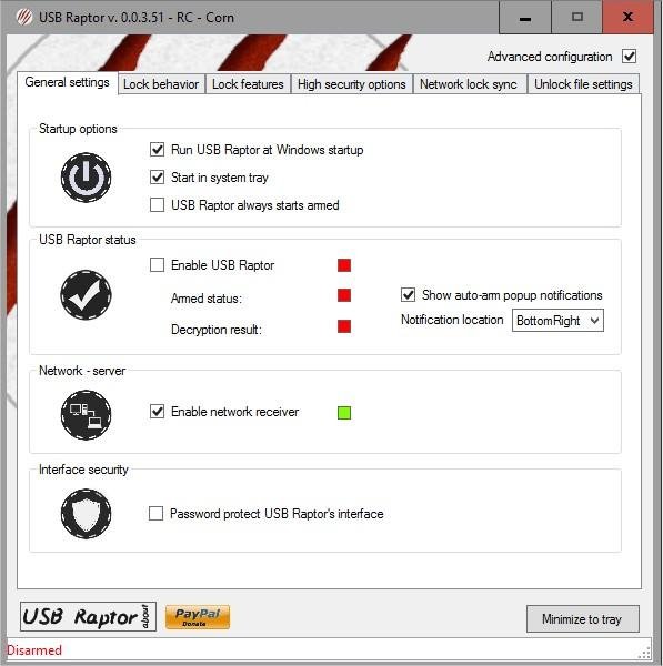 Lock And Unlock Your PC With A USB StickUSB Raptor enables you to turn any USB flash drive into a security token that can be used to lock and unlock your computer.The program can automatically lock the system when a specific USB drive is removed from the computer and unlock the computer when the drive is plugged back into any USB port.USB Raptor works by constantly checking all USB ports for the presence of a specific unlock tokem with encrypted content. If this specific file is found the computer stays unlocked otherwise the computer is locked. To lock your PC, simple pull out the special USB key and walk away.To prevent potential problems in case your USB key is lost or unavailable, you can enable two additional ways to unlock the system via password or network message.